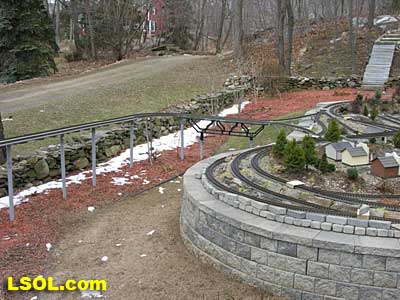 Garden trains seem to thrive quite nicely in the caboose environment and it's amazing how readily they seem to almost self-propagate, crowding the sidings in which they were originally planted. My Fed-Ex guy, a train buff too, now delivers directly to the caboose to help perpetuate this cover story. I spent this winter designing/building an extension shed to connect with the back of the caboose for a yard tree. Six-16' sidings will help relieve congestion and provide space for more trains. This extension and a 5-bay double-track cedar trestle were built to replace the PVC-based turn around and will be installed beginning this spring. However, any further details on these plans will need to be the subject of future articles. Right now I hear some rumblings and I need to check my seismograph on the status of Mt. St. Ellen.
