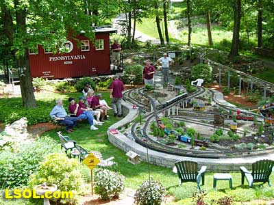 Running Trains Oh yes, the trains! Side, fore and aft windows in the cupola provide terrific views of both the layout and a formal garden to the left.