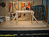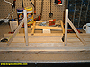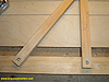 The top of the brace is cut at this marked angle. In my case a table saw was used for all cuts except when the handle was notched to fit the cross braces.  Click for larger picture Completed Side Rail With Uprights and Angle Braces  Click for larger picture Upright and Angle Brace Detail Once both side rails are completed they may be attached to the base. Place the side rails along the edge of the base. The side rail bottoms must be flush with the base bottom. Drill pilot holes and counter sink the wood. Apply carpenter glue and attach the side rails. Make certain that the side rail uprights are at right angles to the base. Since carpenter glue is used only 3 screws were used per side to attach the side rails to the base. At this time the cross braces may be added to span between the uprights. These cross braces will be used to attach the carrying handle. The cross braces are attached to the outside of each upright. Drill pilot holes and countersink the wood for the screws. Attach with #6 screws and carpenter glue. Notch the ends of the carrying handle. Center the carrying handle along the centerline of the carrier, drill pilot and countersink holes, apply carpenter glue and attach to the cross braces.  Click for larger picture Carrying Handle Notched and Ready For Installation  Click for larger picture Pictured above is the completed carrier.