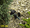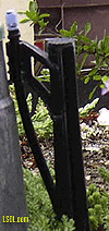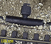On the same control as the Church Hill is the 8 point manifold hidden in the Dynamite building. It controls a soaker hose under the thyme between the tracks (R. white hose), a spray head a juniper on the dry river bank (R. green hose), a soaker for plants along the dry river (R. black hose), a pair of drippers for trees near Dew Drop Inn (L. green hose), three drippers for the Blue Oaks N. of the Dew Drop Inn (L. black hose) and three spares, L. white and both brown hoses. Most of this is hard to see even when you are looking. The drip system has really reduced the amount of hand watering I would have to do on the railroad. I have had minimual problems and would recommend you look at installing a drip system on your railroad. Top of Page