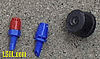 When used with the 1/4" some means of support becomes necessary of course, so there are spikes with clips for this purpose. Another item I found was a pop-up for the drip systems. It has a 1/4" feeder tube and a cylinder which gets buried in the ground. The head on top can be any of the sprayers since they just thread in. The pop-ups come in 8" and 11" lengths and are just the right size to fill a hole created by pounding a piece of 3/4" schedule 40 PVC into the damp ground and removing it again.  8" and 11" pop-up devices