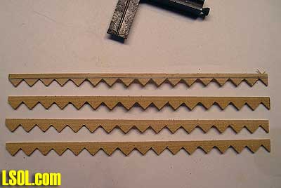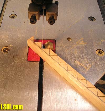Okay keeping in mind you have a 1/2 inch stock piece of wood you are working with. Set the fence on your band saw at just a hair smaller than 1/8 inch or 3/32 what ever tickles your fancy. If you set the fence at that measurement you will get 4 sets of stringers. Be sure to pay attention and use caution when cutting close to the blade or making thin pieces such as the stringers.