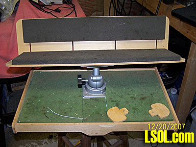 | Thanks for the info, I made one like your first photo to work on my F-3. Got the 3/4 inch foam from Joan's fabric, and was told by them, the best way to cut the foam is to use an electric knife. It worked great, glued the foam on 3/4 " Pine and it know works on all my equipment. |