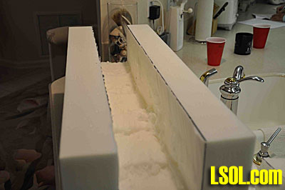 I continued to cut and remove five more similar blocks of foam until I had completed the trough. I then smoothed the bottom as much as possible and removed all of the excess bits and pieces of foam. There are a lot of loose pieces of foam involved with this process.