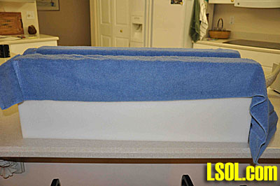 Because I didn't have the material to line the trough, I used a towel as a temporary liner to try out the cradle. That worked some well that I believe that I decided to use a towel for the final lining.