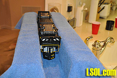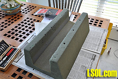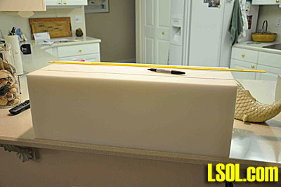 There was even the innovative Light Duty Maintenance Stand design by Bill Ness just a few weeks ago in an article here at LSOL.com. Who would have thought pencils would make a great way to support rolling stock and engines. Following my completion of my NYC GP-9 being repaired and finishing up my Aristo Craft caboose modification, I decided to spend some time trying to figure out how to fabricate a cradle like the one I had purchased so long ago. Those two projects were more difficult than they could have been since I didn't have my cradle down in Florida with me. As I thought about the one I had up in Maryland, I remembered that it was made from a very firm, but pliable foam. So I went to my trusty Mac and opened Firefox and Googled "foam". When I did that I found one of the entities was "Foam Cushions-Custom Cut" with a url of www.buyfoam.com When I went to that site I discovered that the company BuyFoam had a wide variety of foam products that would allow you to select a range of foam firmness and you could specify the size and general shape of the foam you needed. The choices in shapes include: circle seat cushion, mattress or cushion, T-cushion and L-cushion. I decided the mattress or cushion shape was the one best suited for the cradle. So I ordered a piece of the "very firm" (XL-48) foam. I specified a piece 30 inches long, 10 inches high and 10 inches wide and placed the order. It took about 10 days for the foam to arrive and when I opened the large box, I was pleased to find that the form pretty much matched the firmness and texture of that used in the cradle I had purchased years ago. I placed the foam on a flat surface and began to figure out how I would cut out the trough that would form the actual cradle for holding the locos and rolling stock. To determine the size of the trough, I measured my GP-9 and decided to make the width 4 1/2 inches and the depth five inches. I then marked lines on the foam to serve as guides for cutting out the trough. I used a Sharpie permanent marker to draw the lines.