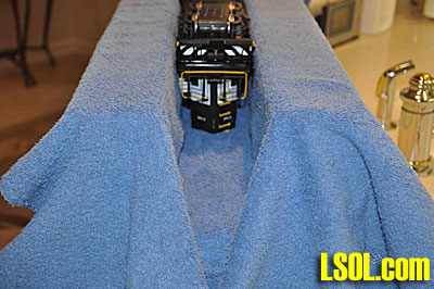 When I look at the finished project, I believe that I could have made the dimensions 24 inches long, ten inches wide and eight inches high and that would have been adequate for most of my work. That would have saved me some money as well. The foam cost $29.17 plus shipping and the towel was $2.67 at Wal-Mart. This was a very simple project and can be done in about an hour once the foam arrives. This would be a great project for one of those dark and snowy nights up north. Just be very careful with the large butcher knife if that is how you decide to cut the trough. It is probably possible to use a saw to make the cuts but that would be kind of tricky too. If anyone builds one of these and uses a saw, let us know how you did it. Oh, and by the way, my wife, Ann, was pleased that the operation didn't seem to damage the knife and the only result was a line on the blade drawn with the permanent marker. I explained that it would wear off in time. I hope that stuff isn't toxic.