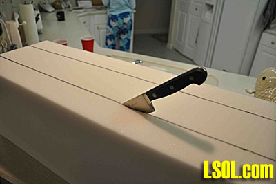 | Try this: use an electric knife. works wonders in the foam and shouldn't have as many rugged edges on the bottom |