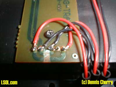 Take the two left side wires (2 1/2" long) and solder them to the PC Board two-pin connector. Watch the color polarity and check that all connections are good and no solder or wire shorts are present.