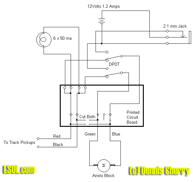 Thus if I wanted to run the Eggliner on battery power with the marker lamps on, I would only get approximately two hours of run time on a 1.2 amp hour battery. Without the lamps about 4 hours. So my design opted to not have the lamps on with battery power but only on with track power. The wiring diagram shows this.