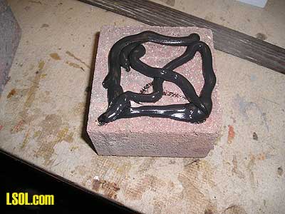 My next step was to get some weight into the building. I took a full size brick cut it in half and I used silicone to glue it to the base on the inside of the building. That will keep it from blowing over in bad weather.