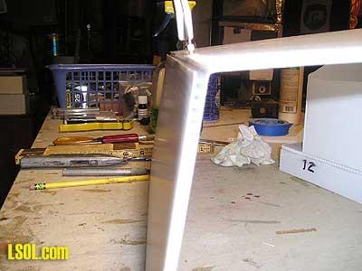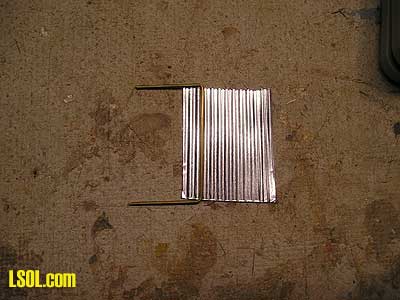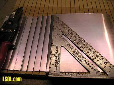 In this photo you will notice a jig. That jig is a piece of poplar wood with grooves spaced every half inch and 1/8" deep. It was cut on the table saw. I measured half of the roof and cut a piece of metal and put it on top of the jig and with a speed square I made the grooves.The square keeps the grooves parallel to each other. I used a spline tool that is used for replacing screens.