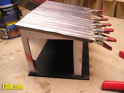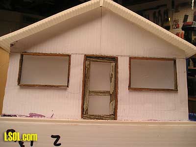 The windows and doors are a simple procedure. The roof material is a thin sheet of metal given to me by supporting member Wes Smith on a recent visit to his home.