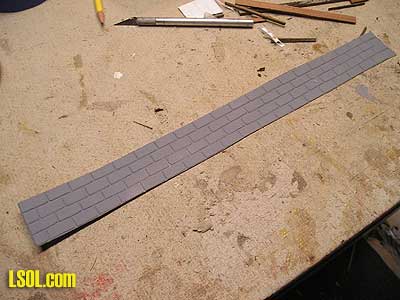My next step was to cover the foundation and my choice was to use plastic brick sheets made by Precision Products. I had a sheet of this material from a earlier project I had done. I save everything but it does come in handy and call me a pack rat if you wish. I installed it.