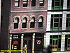 I painted all of the concrete window ledges and moldings with acrylic Aged Concrete. Next I painted the window frames with a variety of colors depending on the building. Some of the buildings were stone or partly stone and I used several different colors on those stones. Most of them were done in Concrete or Primer Gray. I purchased a couple of sets of "O" scale advertising signs decals and applied them to the walls in appropriate places. All of the building fronts were then weathered with "Grimy Black" and "Primer Gray" spray paint. I purchased construction paper in several colors and used tan, gray and green paper to make window shades for many of the windows. I put them at various heights to make the windows look more realistic and then glued black construction paper over all of the windows.