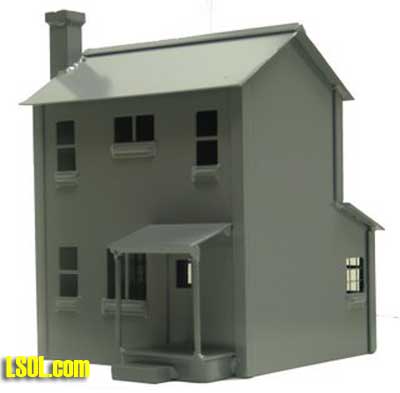 First, how about a house typical of Montpelier, Ohio, my home town. (Dan Hoag, (me), is the owner of Eaglewings Iron Craft and creator of all Eaglewings buildings). These are the plans for the first house> It is a two story house, like we mention before typical of Montpelier, Ohio back when I was just a little kid dreaming of railroads. The house when put together will measure 11-3/4" long by 12" wide by 14-1/2" tall. And it will look something like this
