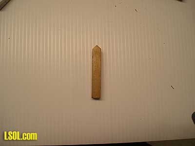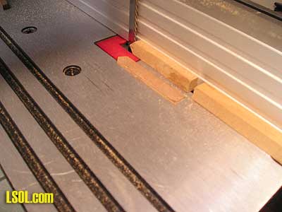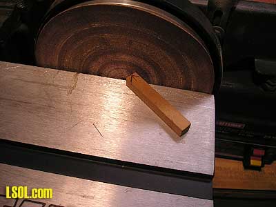 I put the 3/8 stock on the line and was able to get all the same size pieces (2 1/2 inches.) I took the 2-1/2 inch piece and marked the top 45 degrees on each side with a square (0005). Once I had accomplished that it was off to the sander and I sanded the 45-degree marks I had made on the 3/8 stock.