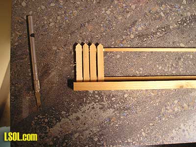 Next I made strips 1/8 x 3/16 inch used for gluing the pickets to. I will call these pieces the rails.