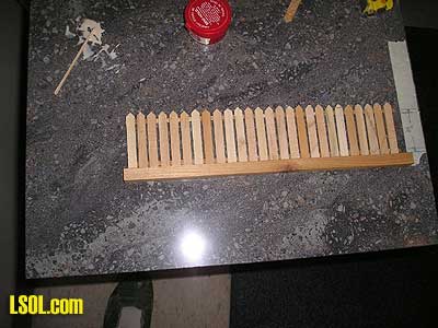 I took a ceramic tile 16x16 and used it for making the fence. The reason for the tile is so I can stick the rails for the pickets to the tile using Mini Hold.