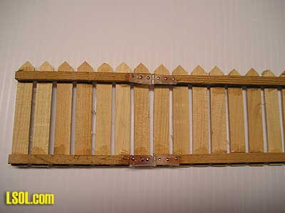 I made 8 sections and something was missing. Oh yes, what is a picket fence without a gate? The gate can be made several ways. I choose to make a section 3 inches long. Once that section was made I just took nylon hinges.