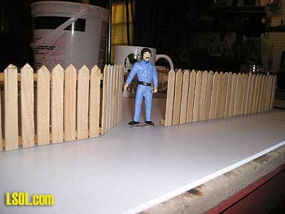 The picket fence will look good around structures, junkyards, and play grounds. This was a simple project and it was fun, give it a try the fence will look good around your buildings. Top of Page