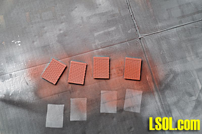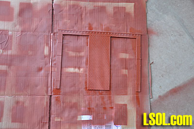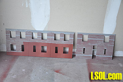 Next I spray painted the long walls inside and outside with red primer to give them the basic brick color. I also painted the back wall and put them all aside to dry.