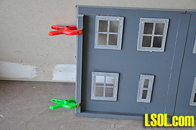 I glued the windows in place in the window openings in all of the walls using clear silicon adhesive caulk.
