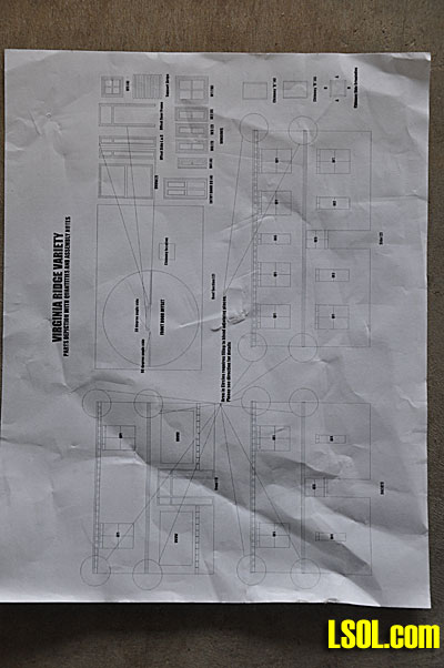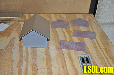 The kit comes in a large plastic bag and contains all of the materials for the building. These include walls, roof, chimney, windows, doors and clear plastic for the windows. There are also detailed instructions and diagrams describing the construction of the building. Since I was building a different building, I discarded the instructions, but found them very well done.