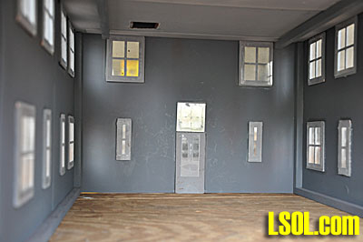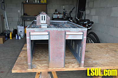 After the red primer had dried, I painted all of the brick surfaces with a light grey latex paint and wiped it off with a soft clean rag to give the brick the mortar lines. I then painted all of the interior walls with a dark grey paint because I decided that the railroad would have done that rather than leave the walls brick colored. I could have saved the step of painting them red first, but sometimes I change my mind as I build.