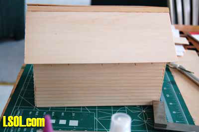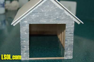 | The garage is 8" X 5". The side walls are 3 3/4 " high. The end peak is 6 1/4 high. The garage doors are 2" X 3 3/4 each. The basswood is all 1/16" thick. The autos are all 1/24 or 1/25 since they don't make them 1/29. I feel that the 1/32 autos look too small on the railroad. The side walls are siding stripwood and the roof is plain. It was a lot of fun to build and I am glad that some of you are enjoying seeing the project. Thanks, Noel |