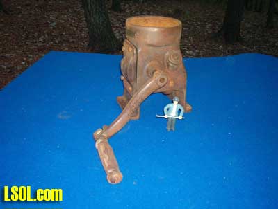 Once a common sight on almost any steam-operated railroad, coaling stations or coaling docks were a necessary part of locomotive servicing. The basic idea is that the coal is delivered directly to the underside of the dock, most commonly by a track on the side where a hopper would dump the load of coal. It would then be hoisted into the bin above and dropped by gravity into the tenders of the locomotives via a chute. The coal, after being dumped into a pit beneath the incoming track, was hoisted to the top of the coal dock by means of a skip hoist, which was a couple of large scoops that ran on continuous track on which the scoops were attached via a roller-coaster hookup. On most docks, on the scoop of coal reaching the top, the first step after the dump would be to enter a crusher that would break down any lumps too large for a fireman's scoop or an exit from the chute of the dock into the tender. After exiting the crusher, the coal would fall into the central bin, to be released by the hostler or fireman into the tender (after positioning the same beneath the chute). The counter-balanced chute would be pulled down into the tender, and a gate at the base of the bin would be pulled open and coal would commence falling out by way of gravity. Sand, used in traction, that had been dried in a nearby sandhouse, which usually had a stove for the purpose, would have been fed to an elevated hopper above the locomotive. It would have also been fed by gravity into the locomotives sand dome. I have included a small holding shed on the end of the coaling station in this model, as well as a sanding house on the ground level with a connecting pipe between the two structures. The basic surprise part of this coaling station/dock is that the central part is from a once common farm implement, a cream separator, in this case, one made in the past by Montgomery Ward. I've paid homage, in this case, to Montgomery Ward by leaving the brass builders plate on the front of the coal station.