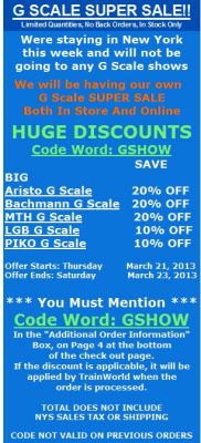 Trainworld is not going to the East Coast Large Scale Train Show, but that doesn't mean you can't get a good deal.