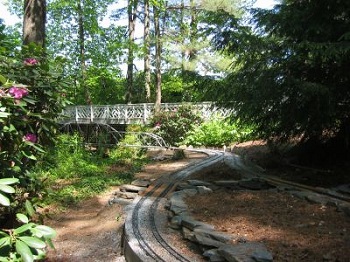 | Overview | Vines Gardens is part of a 90-acre private estate originally owned by Myrna and Charles Adams. The Vines Garden Railroad covers an area of approximately one-quarter acre. Three bridges, two tunnels and a viaduct carry the rail lines over and through the more difficult terrain. Visit their website for the history of a Garden Railroad that almost went away forever; Vines Garden Railroad wesite. |