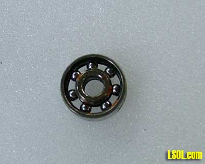 As the name implies the bearing, instead of having the steel axle slide on a bronze bearing, is actually a series of little rollers. A roller bearing is similar to a ball bearing assembly, and this reduces the friction and the heat caused by friction. I don't have a roller bearing torn apart to show here, but I did open up an old ball bearing so you can see the insides.