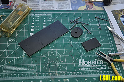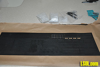 After finding the website and ordering the kit, I received a large box from GAL and opened it to find a large amount of black styrene parts, some castings and a few pages of instructions.