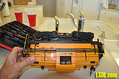 While I was working on the model, I went online and found an Aristo Craft center cab switcher to purchase for the power trucks. I might have been able to buy those trucks from Aristo Craft but decided that the easiest way was to just buy the whole locomotive and remove the trucks. After receiving the loco, I disassembled it and removed the trucks. It came apart very easily. I am sure that the various parts from the loco will come in handy for something in the future.