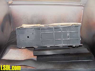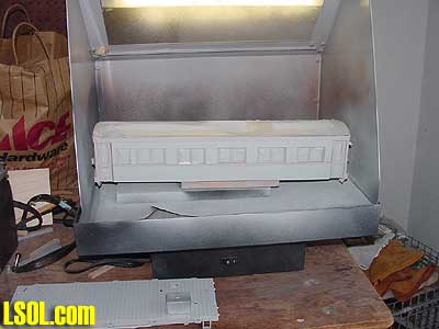 This was done with Krylon primer gray in my spray booth. I painted the underbody for the line car at the time, as well.