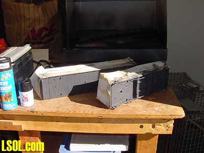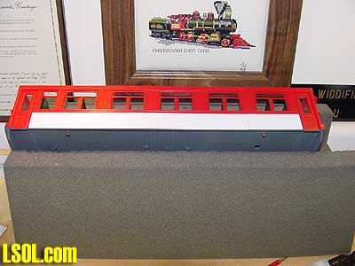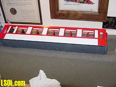 to dull the red body. Then after allowing the gray primer to dry overnight, I spayed the body with Polly Scale Milwaukee orange.