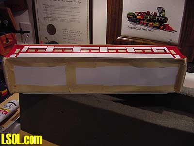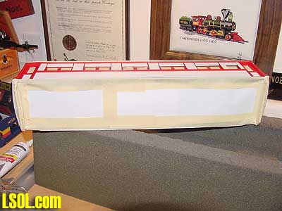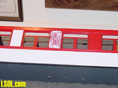 I then cut out strips to fill in the areas between the windows and glued them in place using clear Acrylic adhesive caulk (White Lightning 3006).
