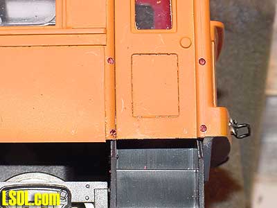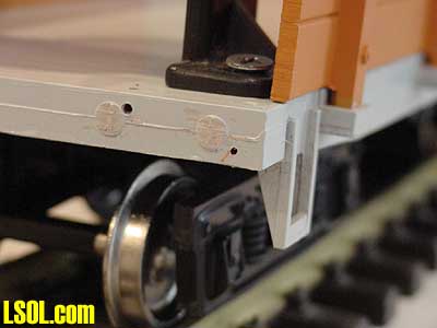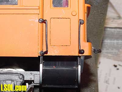 I used grab irons and strap steps from Ozark Miniatures to replace the over-sized grab irons that came on the car. Painting them flat black, I attached them to the car.
