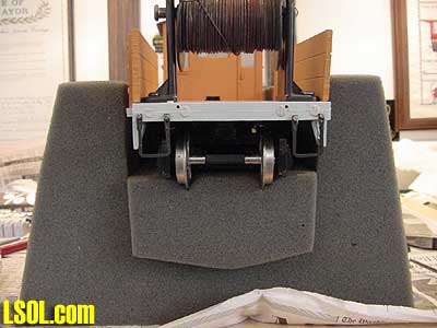The final job was to attached the trolley pole retractor coil and the retractor wire to the car.