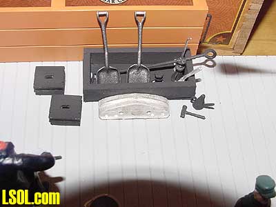 I constructed a small toolbox from basswood and painted (flat black) the steam engine tool set and the passenger car steps from Ozark Miniatures.