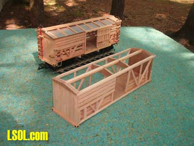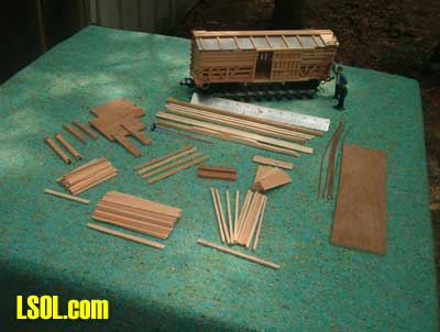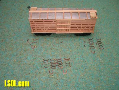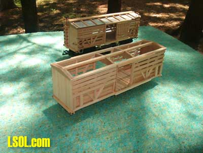 After a few months of thought on how to approach this, I have compiled a step by step assembly of a generic cattle/stock car using basic scrap wood and "household" Goop with no brads, nails or screws used in constuction.