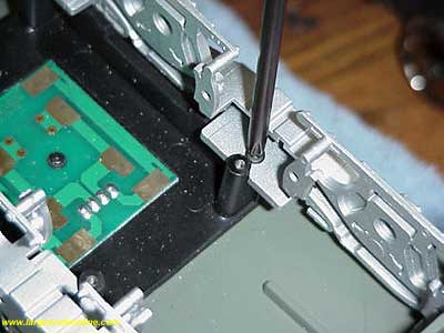 There are four screws for the drive blocks. You will see 8 screws in the drive block and if you look a little harder you will see four more that hold the side frames on. This photo identifies the correct screw and it will be in 3 corresponding locations on each drive block. Remove the screws and you are ready to remove the drive block. There are no wires to disconnect.