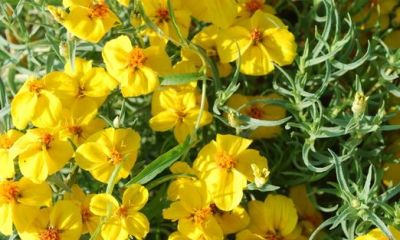 The 1-inch-diameter flowers feature bright, golden-yellow petals and