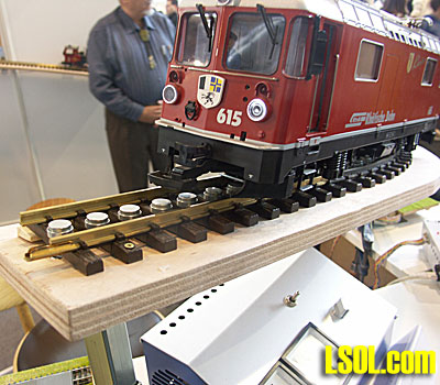 This is necessary to take advantage of the extra adhesion from 4 magnets mounted under each motor block. This allows for climbing steep grades. You can add a second motor block, along with 4 more magnets, for even more climbing ability. And each motor block is equipped with a rack drive. (See the photo of the underside of the locomotive, above). If you can find some plastic rack sections a locomotive equipped with two motor blocks and 2 rack drives will climb in excess of a 30% grade. It would be fun to try this as the instructions state that a single motor block with the locomotive pulling a single passenger car can climb 30%. I do not have real experience with this since I never used my trains on a railroad. I did however attach some track to a sheet of plywood which I tilted, in order to witness this climbing action, and it was most impressive. As a side note, I attended a model expo in southern Germany in 2006 where one of the exhibitors was demonstrating his system of magnets for use on an LGB RhB locomotive for the same purpose. Magnets were attached to the underside of the locomotive and were attracted to sections of magnets placed between the rails of standard brass track. I regret that I have mislaid the name of the individual who developed this system. Very few LGB locomotives offer rack drive, but the system of magnets is a solution for modelling mountainous terrain.