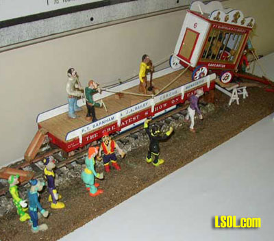 Firing - the process that fuses the particles into a solid - requires only low temperatures, low enough to use a home oven as your kiln. The colors and size are not changed during firing. When fired, the clay gets hard enough to make durable objects, and can be finished in various ways to obtain textures from glassy to stonelike. What can I use polymer clay for? In Large Scale Trains you can use polymer clay to make just about anything; people, car loads, and any kind of small accessory that you might find on a railroad. You can cover anything (as long as it won't melt or burn at the low firing temperatures) with a veneer of polymer clay: wooden boxes, picture frames, mirrors, tableware. One popular application is jewelry: polymer clay can be used to make beads, pendants, bracelets, and neckpieces. Small sculptures and buttons are other possibilities. Clay artists have developed techniques to give polymer clay the appearance of granite, jade, amber, coral, turquoise, and ivory, and its flexibility means you can make pieces in shapes and sizes that wouldn't be possible using actual stone. (Because the plasticizer in polymer clay may leach out even after it's fired, polymer clay is not suitable for objects in direct contact with food.) Where can I find the clay? Polymer clay is undergoing a surge in popularity and is more widely available than it was a few years ago. Look in local craft stores, art-supply stores, and bead stores. Some toy stores and general (sundries) stores also carry polymer clay, although the selection of colors is sometimes limited. You can obtain polymer clay via mail order, although some outlets require you to buy in large quantities and/or have a reseller's license. There are several polymer clay manufacturers; each brand is a little different in softness, strength, and so on, and each one offers its own selection of colors. Polymer clay is generally available in small (about 2 oz.) and large (about 12 oz.) packages. In the U.S., a 2-oz. package usually costs between $1.50 and $3.00, depending on brand and location.