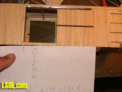 Along the lower edge of the car there are 4 angle pieces used to help guide and secure the door on the car, these I made out of more 1/8th aluminum flashing. I made a series of bends every 1/8th inch to make these, but then discovered that they tended to bind on the door, so the part that the door rides in was made 3/16 to make it easier to slide the doors. For spacing them I drew out a simple guide on a piece of paper and using this I made small pencil marks on the car sides where these brackets go.