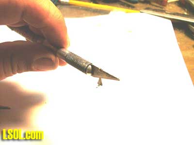 So I trimmed the tab on one end a little shorter, and re-bent this tab. I bent it so that it was flush with the end of the part, and then bent it again over the back of an Xacto knife blade.