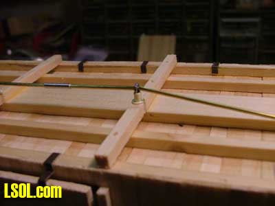 I used florist wire to make eyelets to hold the truss rods, and used 1/8th eyelets to space the rods away from the board.